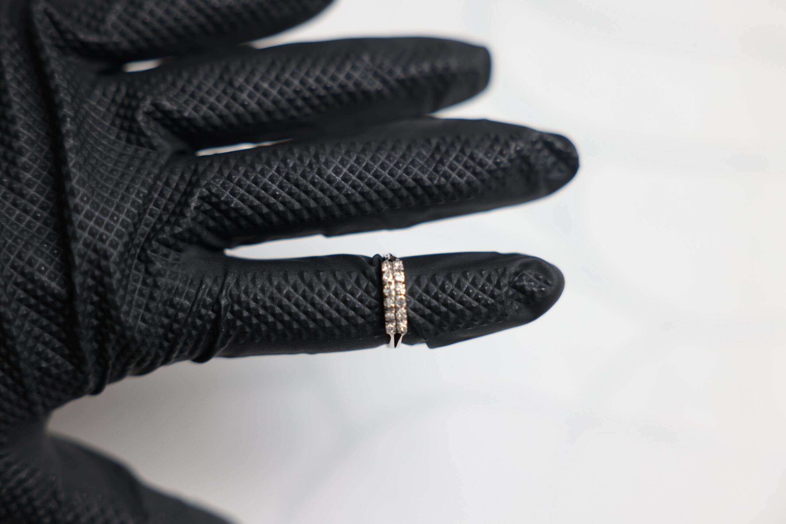To maintain luster, rinse occasionally with lukewarm water and mild soap, then pat dry with a soft cloth. Avoid chlorine, harsh chemicals, and abrasive cleaners that can dull metal or loosen settings over time. Periodic professional checks of prongs/channels are recommended—especially for multi-stone rings—to ensure each diamond remains secure.