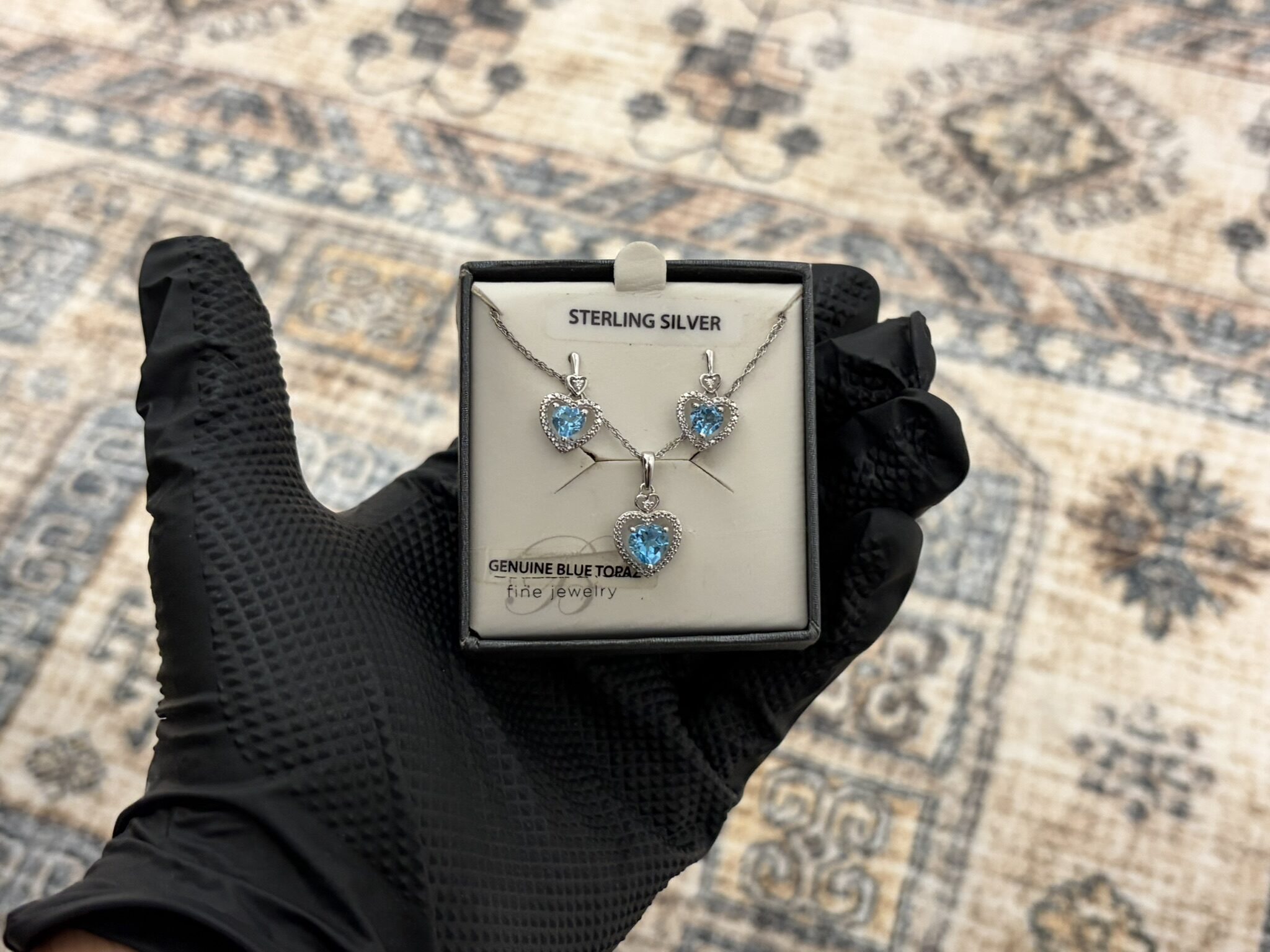 Overview of the Blue Topaz Heart Necklace and Earrings Set